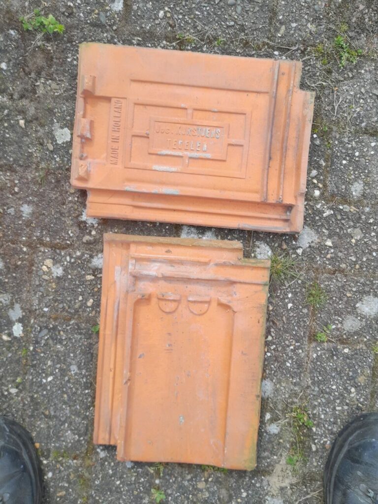 ca 45 mooie rode tuile du nord gebakken dakpannen, Jos Kurstjens, 3 kops, vlakke wel